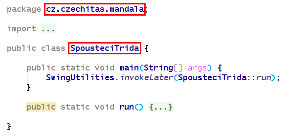 <exec.mainClass>...</exec.mainClass>. Do elementu je nutné vepsat správné, plně kvalifikované jméno spouštěcí třídy (tedy včetně java package).Jsou to údaje z vaší třídy, ve které máte metodu